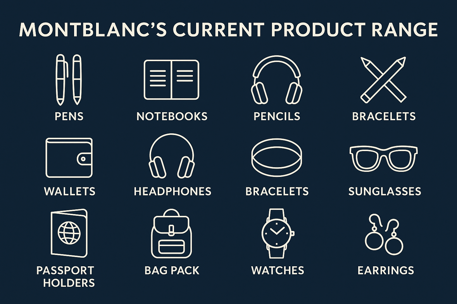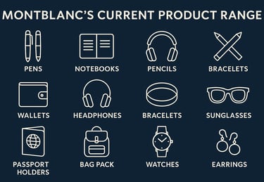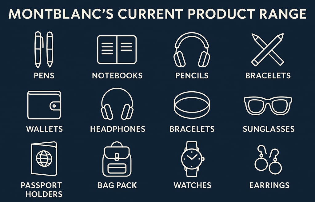At present, Montblanc has a huge range of products that started from the luxury and fine pen industry, stretching into products like wallets, accessories, notebooks, pencils, backpacks, bracelets, etc.